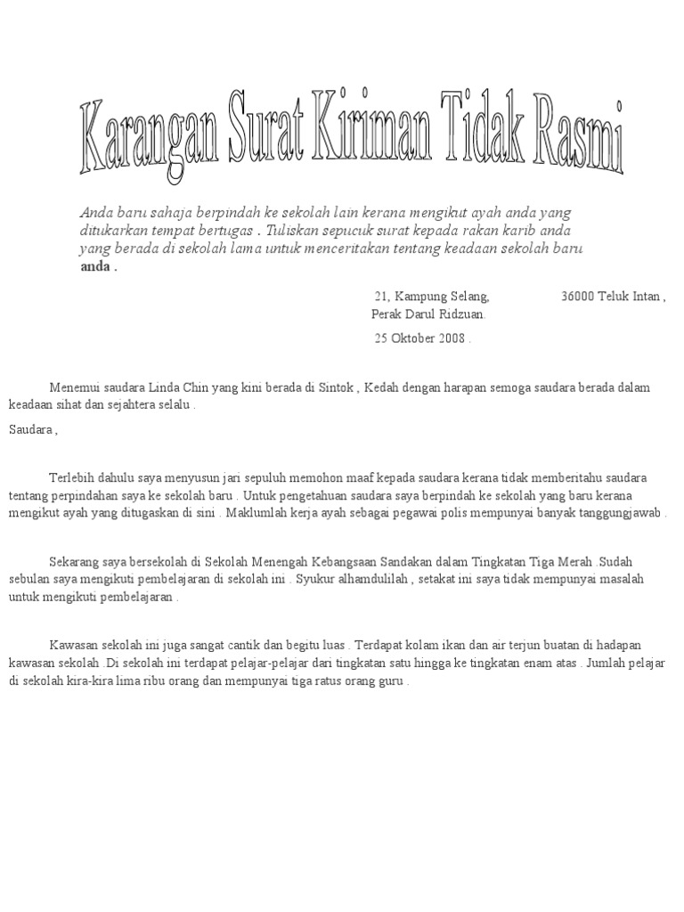 Contoh Surat Kiriman Tidak Rasmi Pdf